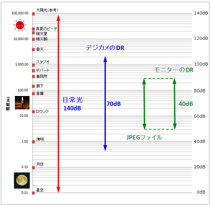 何しろJPEGファイルは画像データであって、それ自体にはダイナミックレンジなど存在しないからです。