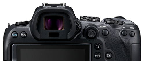 EOS R6の左背面上部にあるRATEボタン