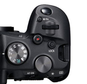 EOS R6の右エプロン部にあるM-FnボタンとLOCKボタン